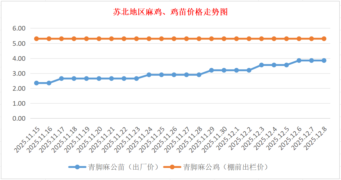 苏北地区麻鸡、鸡苗价格走势图(图源:鸡病专业网)