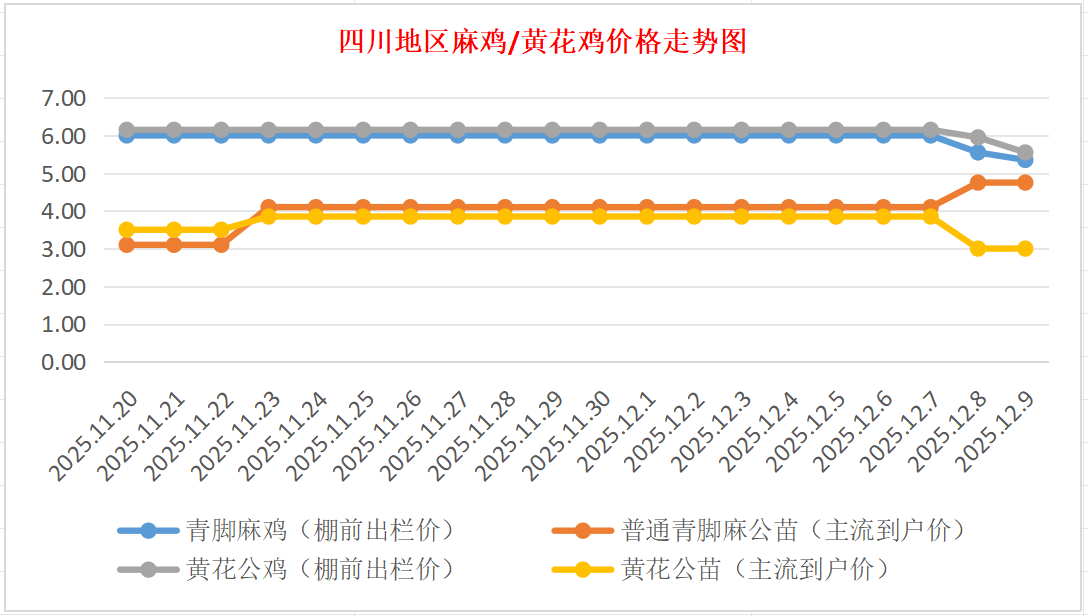普通青脚麻公苗:价格稳定,主流到户价4.50-5.00元/羽,稳。
