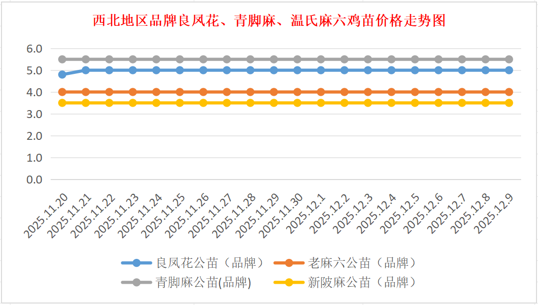 品牌新陂麻:价格稳定,到户价公苗4.50元/羽,稳。