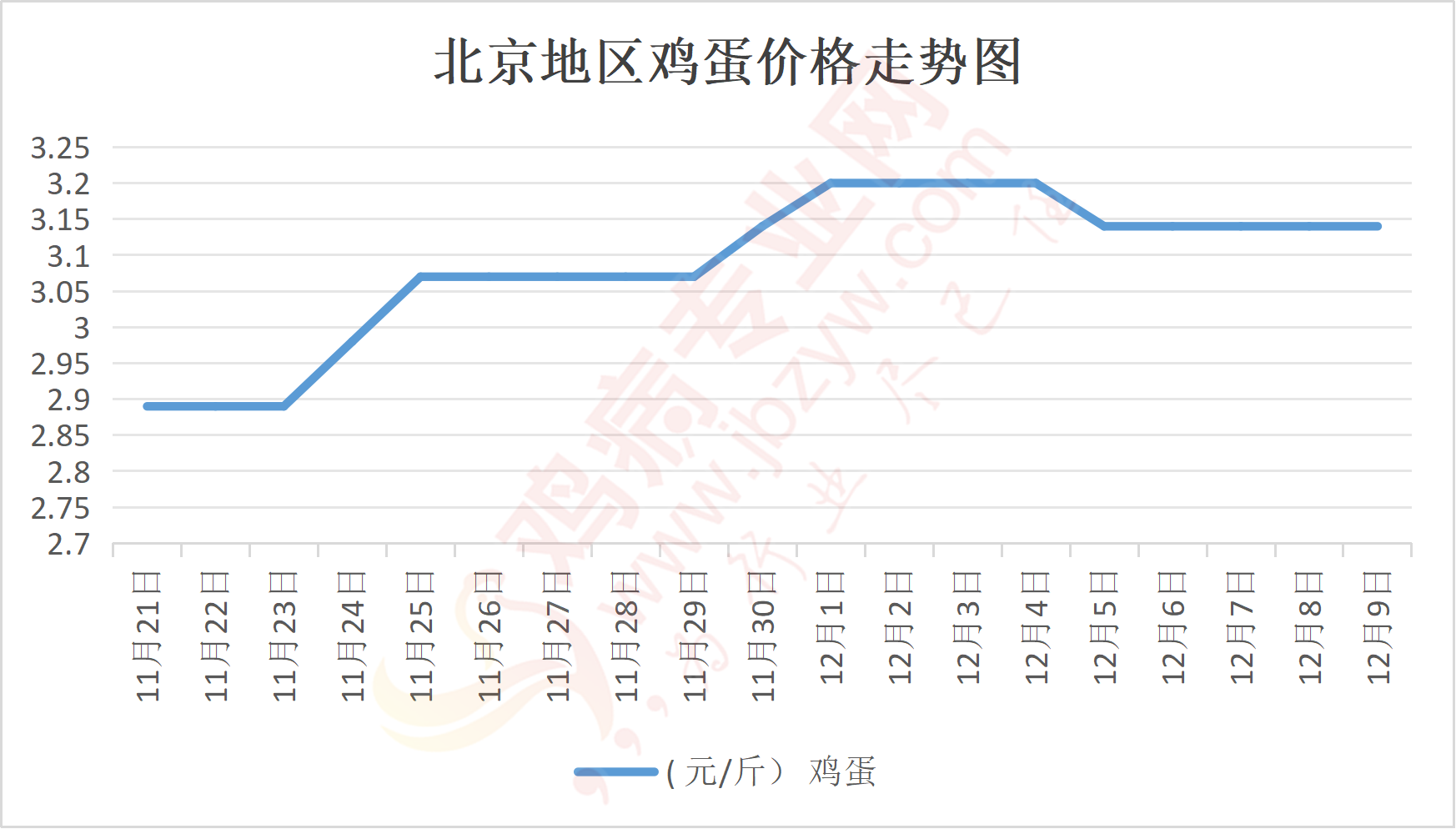 鸡病专业网消息:12月9日,北京大洋路鸡蛋主流批发价格138-139元/44斤,稳,到货6台车,成交灵活,走货正常偏快;回龙观鸡蛋138元/44斤,稳;顺义石门鸡蛋138元/44斤,稳。
