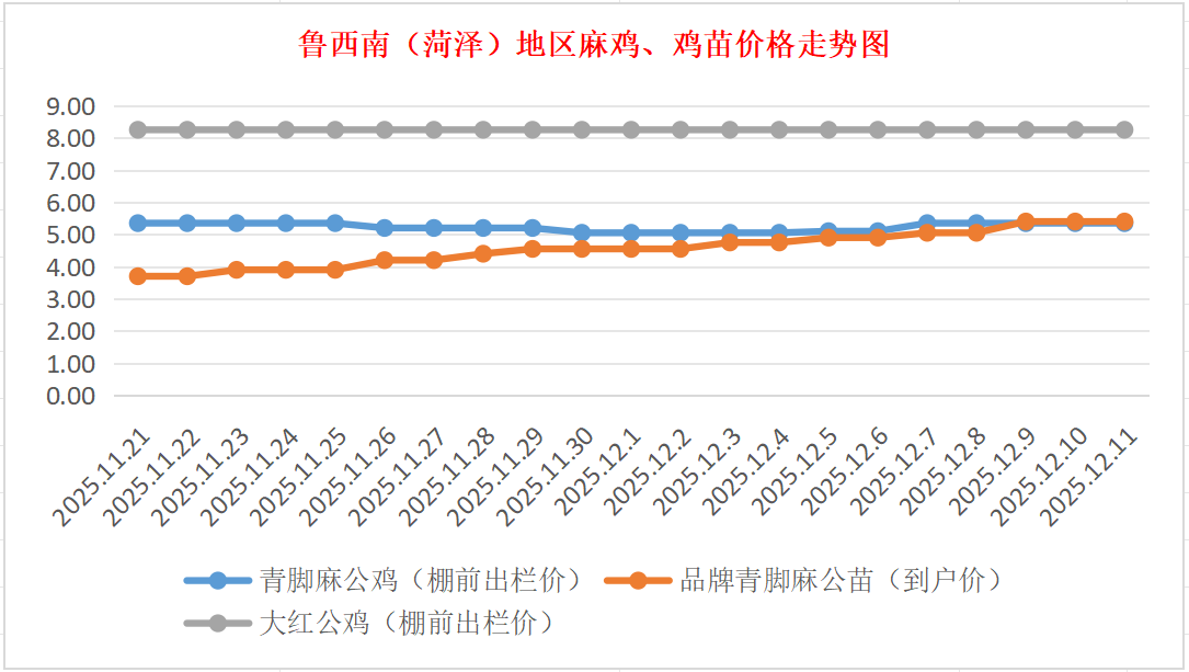 菏泽地区麻鸡、鸡苗价格走势图(来源:鸡病专业网)
