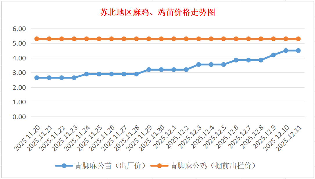 苏北地区麻鸡、鸡苗价格走势图(图源:鸡病专业网)