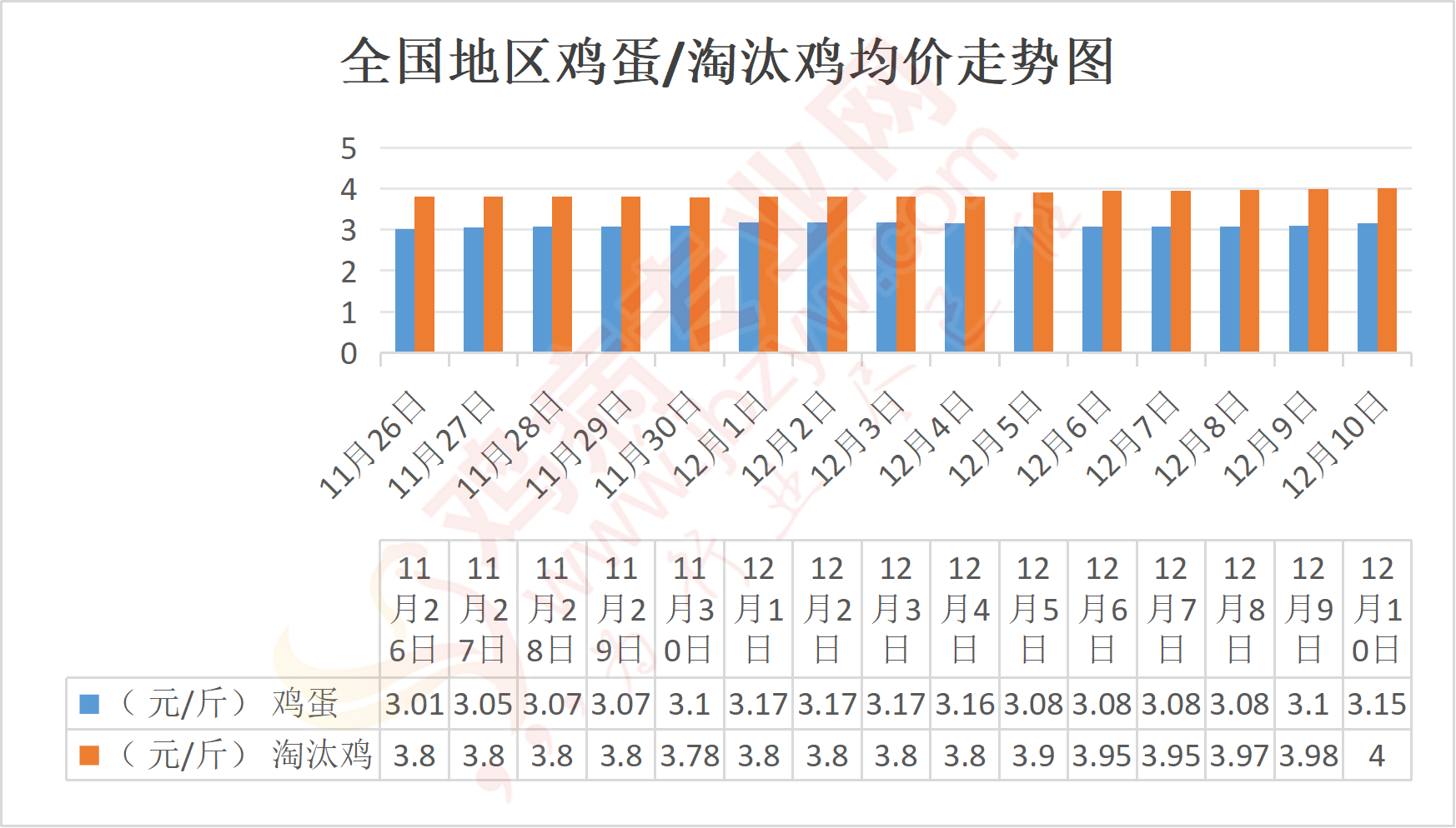 河南地区:邓州鸡蛋3-3.05元/斤,与昨日相比涨,淘汰鸡3.9-4.4元/斤;