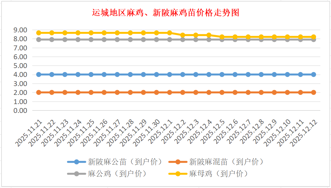 运城地区麻鸡、新陂麻鸡苗价格走势图(来源:鸡病专业网)