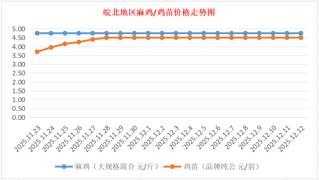 鸡病专业网独家信息:2025年12月12日皖北地区817-麻鸡行情最新走势