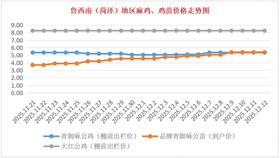 菏泽地区麻鸡、鸡苗价格走势图(来源:鸡病专业网)