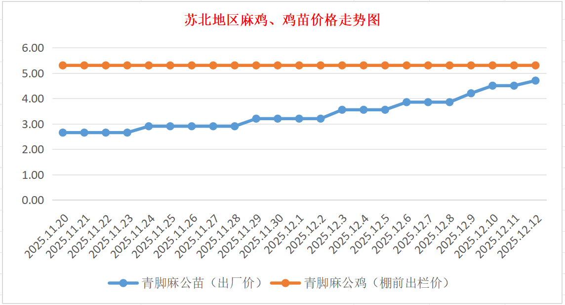 苏北地区麻鸡、鸡苗价格走势图(图源:鸡病专业网)