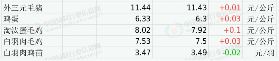 全国淘汰蛋毛鸡均价上涨。12月以来全国鸡蛋价格持续反弹,养殖端惜淘情绪愈发浓厚,导致供应偏紧,预计近期淘汰鸡价格维持小幅调整、偏强震荡的态势。今日山东地区淘汰蛋毛鸡均价8.32元/公斤,与昨日价格持平;江苏地区淘汰蛋毛鸡均价9.00元/公斤,与昨日价格持平;辽宁地区淘汰蛋毛鸡均价8.80元/公斤,较昨日价格上涨0.20。