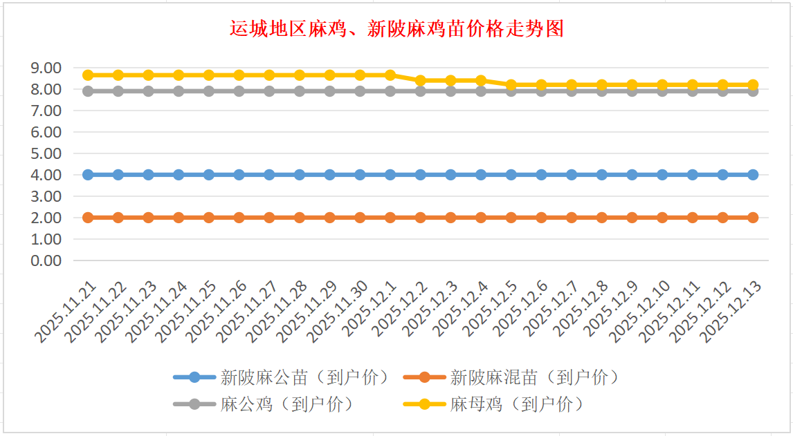 运城地区麻鸡、新陂麻鸡苗价格走势图(来源:鸡病专业网)