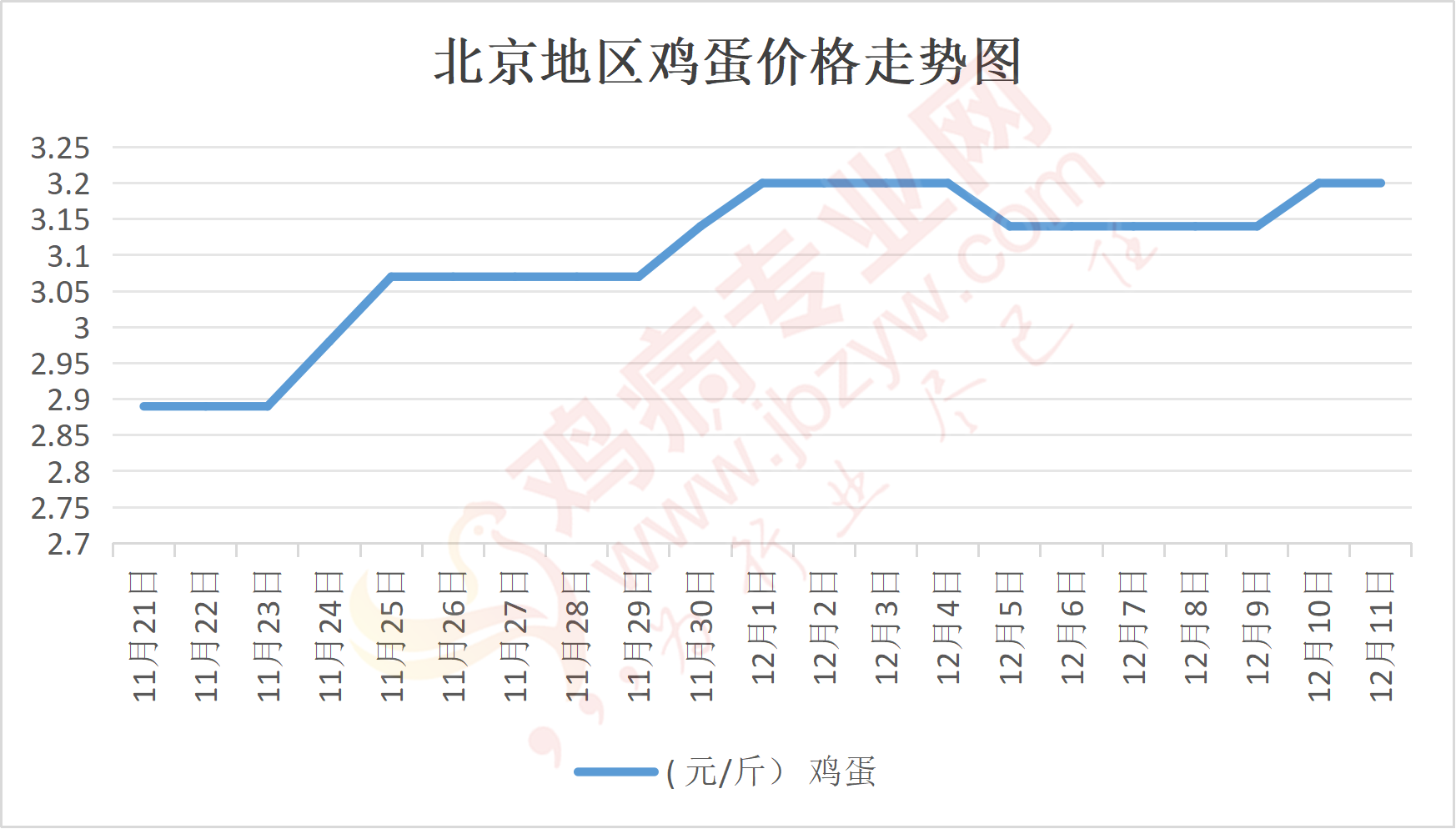 鸡病专业网消息:12月12日,北京大洋路鸡蛋主流批发价格141-142元/44斤,稳,到货5台车,成交灵活,走货正常;回龙观鸡蛋141元/44斤,稳;顺义石门鸡蛋141元/44斤,稳。