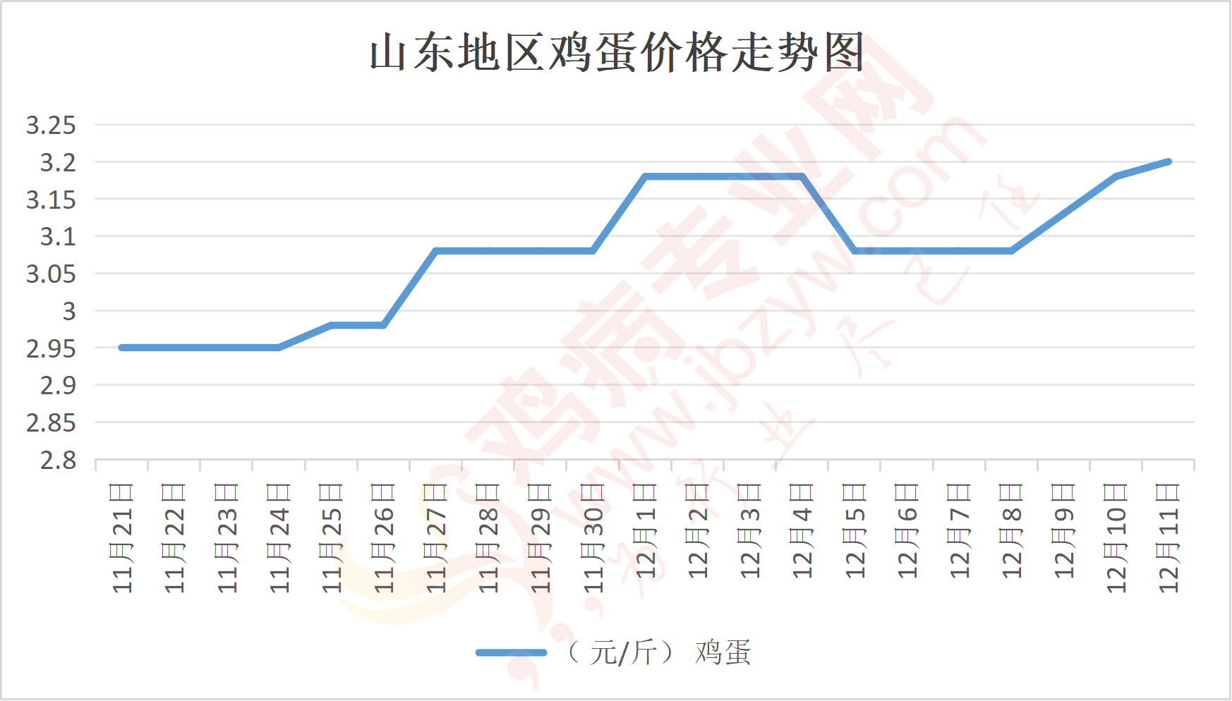 鸡病专业网消息:12月12日,山东地区莱阳鸡蛋3.25元/斤,稳;青岛鸡蛋3.25元/斤,稳;诸城鸡蛋3.25元/斤,稳;安丘鸡蛋3.15元/斤,稳;昌乐鸡蛋3.15元/斤,稳;寿光鸡蛋3.15元/斤,稳;昌邑鸡蛋3.15元/斤,稳;高密鸡蛋3.25元/斤,稳;青州鸡蛋3.15元/斤,稳;临朐鸡蛋3.15元/斤,稳;莱州鸡蛋3.25元/斤,稳;威海鸡蛋3.25元/斤,稳;临沭鸡蛋3.2元/斤,稳;沂水鸡蛋3.2元/斤,稳;沂南鸡蛋3.2元/斤,稳;莒南鸡蛋3.2元/斤,稳;兰陵县鸡蛋3.2元/斤,稳;日照鸡蛋3.2元/斤,稳;莒县鸡蛋3.2元/斤,稳;日照辛萁商贸鸡蛋3.2元/斤,稳;泗水鸡蛋价格93元/斤,稳;济宁、汶上鸡蛋价格93元/斤,稳;梁山、东平红蛋价格93元/斤,稳;枣庄滕州地区鸡蛋混码主流到户94元/30斤,稳;泰安地区新泰鸡蛋价格93元/斤,稳;菏泽地区曹县主流到户93元/斤,稳;成武鸡蛋价格93元/斤,稳;单县到户93元/斤,稳;聊城莘县93元/斤,稳。
