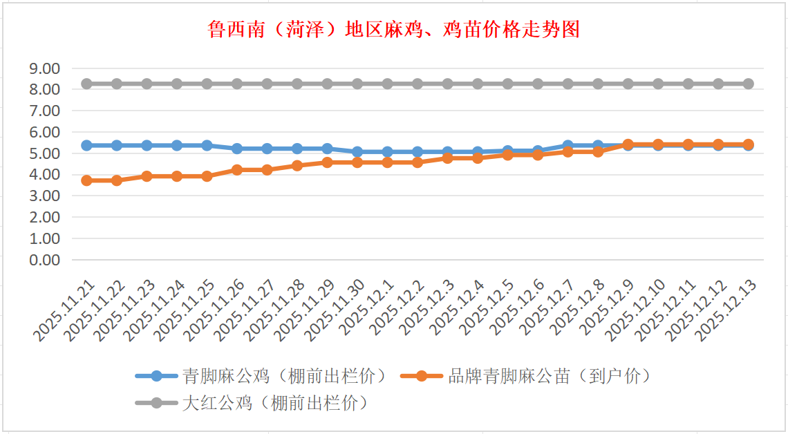 菏泽地区麻鸡、鸡苗价格走势图(来源:鸡病专业网)