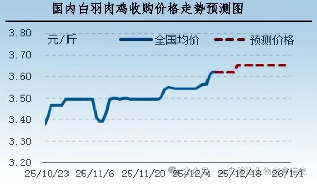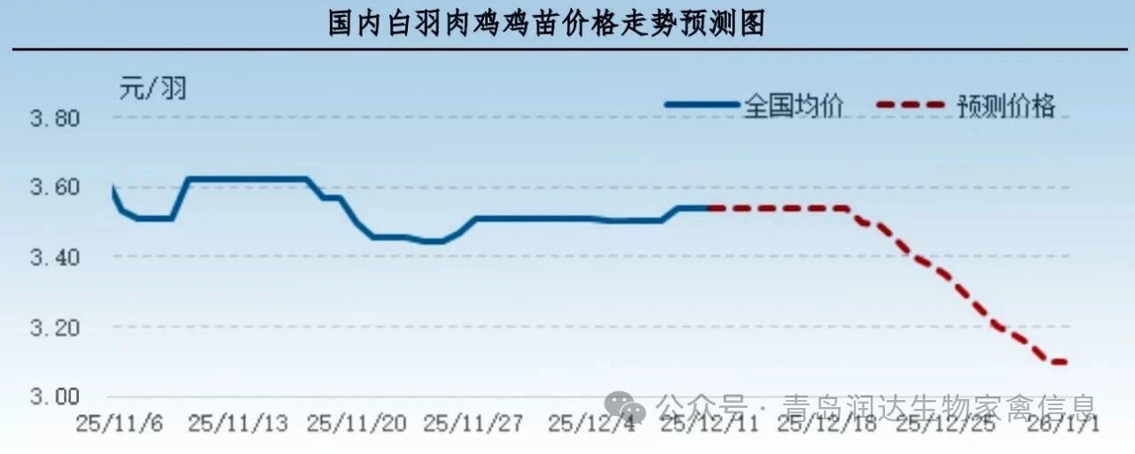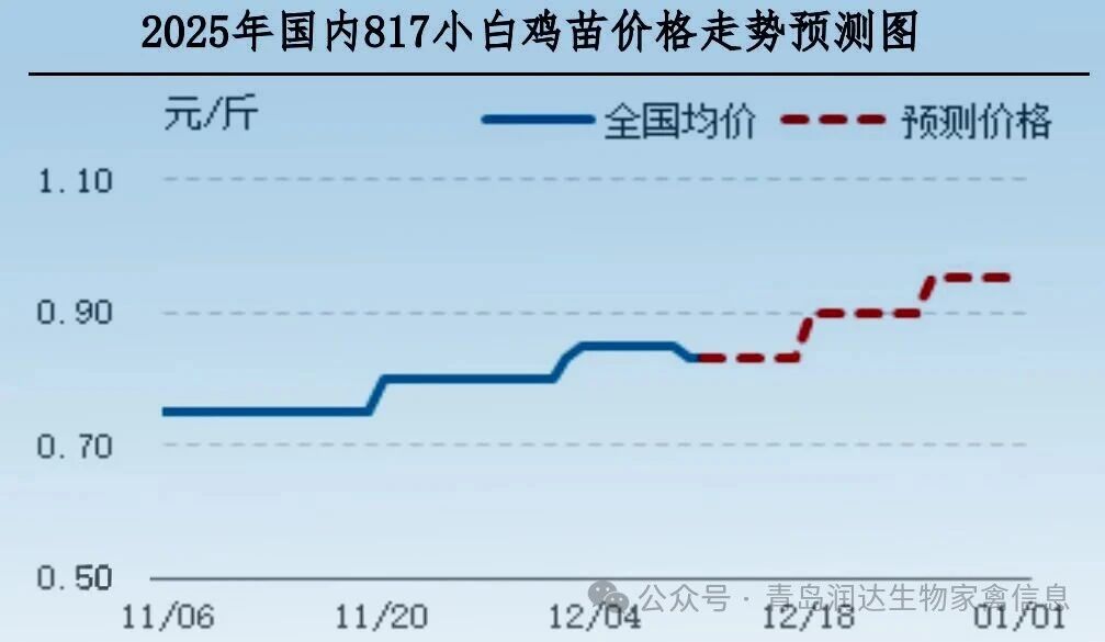 下旬养殖端补栏年前最后一批毛鸡积极性或提升,届时需求面利多市场,苗市交投活跃度提升,鸡苗价格或上行。预计未来三周817小白鸡苗价格呈先稳后涨走势。