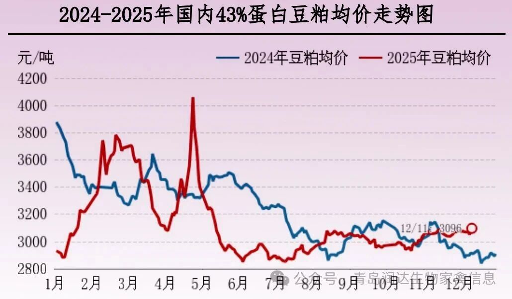 本周全国43%蛋白豆粕周度均价3071元/吨,与上周均价相比,下跌1元/吨,跌幅0.33%。