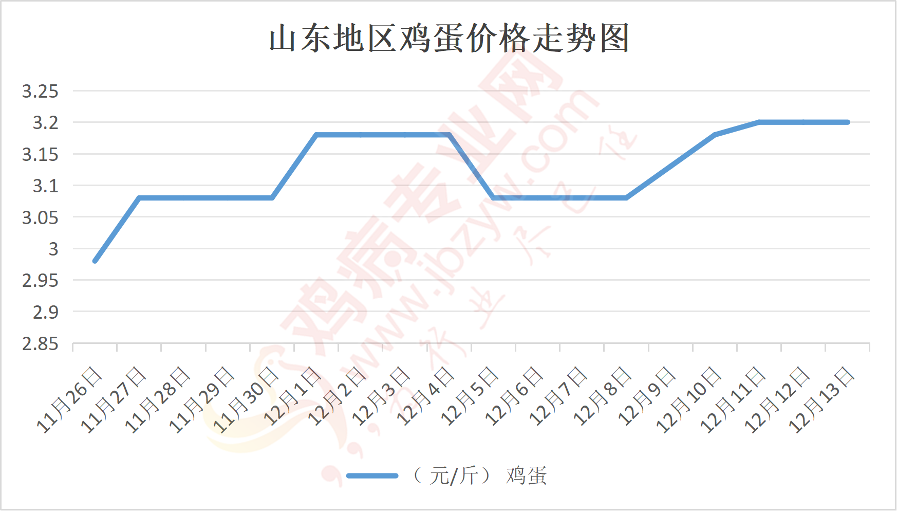 鸡病专业网消息:12月13日,山东地区莱阳鸡蛋3.25元/斤,稳;青岛鸡蛋3.25元/斤,稳;诸城鸡蛋3.25元/斤,稳;安丘鸡蛋3.15元/斤,稳;昌乐鸡蛋3.15元/斤,稳;寿光鸡蛋3.15元/斤,稳;昌邑鸡蛋3.15元/斤,稳;高密鸡蛋3.25元/斤,稳;青州鸡蛋3.15元/斤,稳;临朐鸡蛋3.15元/斤,稳;莱州鸡蛋3.25元/斤,稳;威海鸡蛋3.25元/斤,稳;临沭鸡蛋3.2元/斤,稳;沂水鸡蛋3.2元/斤,稳;沂南鸡蛋3.2元/斤,稳;莒南鸡蛋3.2元/斤,稳;兰陵县鸡蛋3.2元/斤,稳;日照鸡蛋3.2元/斤,稳;莒县鸡蛋3.2元/斤,稳;日照辛萁商贸鸡蛋3.2元/斤,稳;泗水鸡蛋价格93元/斤,稳;济宁、汶上鸡蛋价格93元/斤,稳;梁山、东平红蛋价格93元/斤,稳;枣庄滕州地区鸡蛋混码主流到户94元/30斤,稳;泰安地区新泰鸡蛋价格93元/斤,稳;菏泽地区曹县主流到户93元/斤,稳;成武鸡蛋价格93元/斤,稳;单县到户93元/斤,稳;聊城莘县93元/斤,稳。