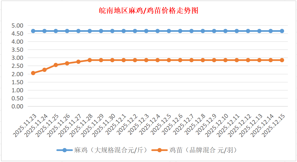 鸡病专业网独家信息:2025年12月15日皖南地区817-麻鸡行情最新走势