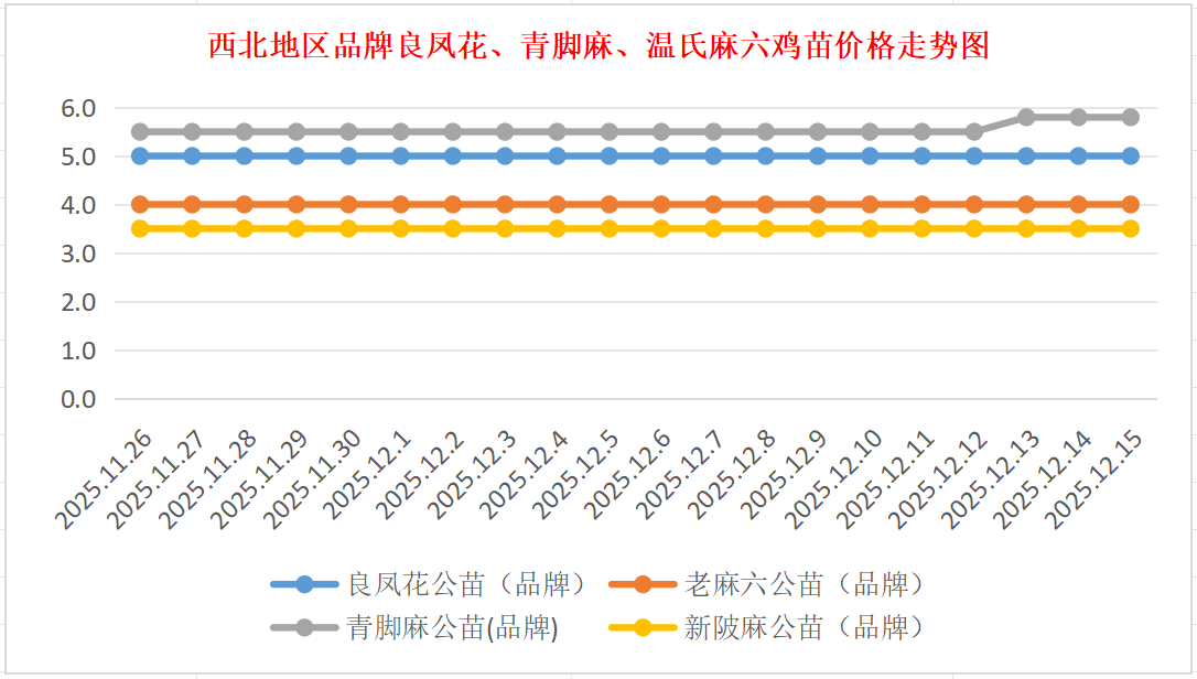 品牌新陂麻:价格稳定,到户价公苗4.50元/羽,稳。