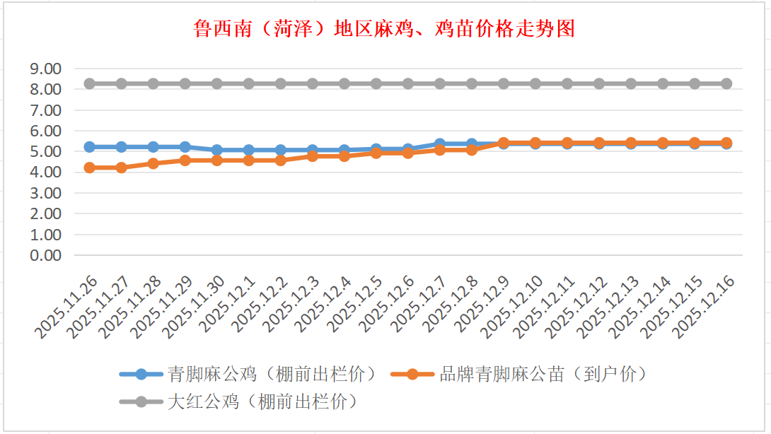 菏泽地区麻鸡、鸡苗价格走势图(来源:鸡病专业网)