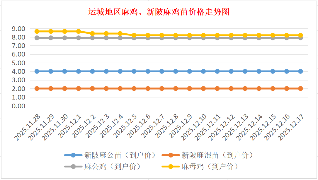 运城地区麻鸡、新陂麻鸡苗价格走势图(来源:鸡病专业网)