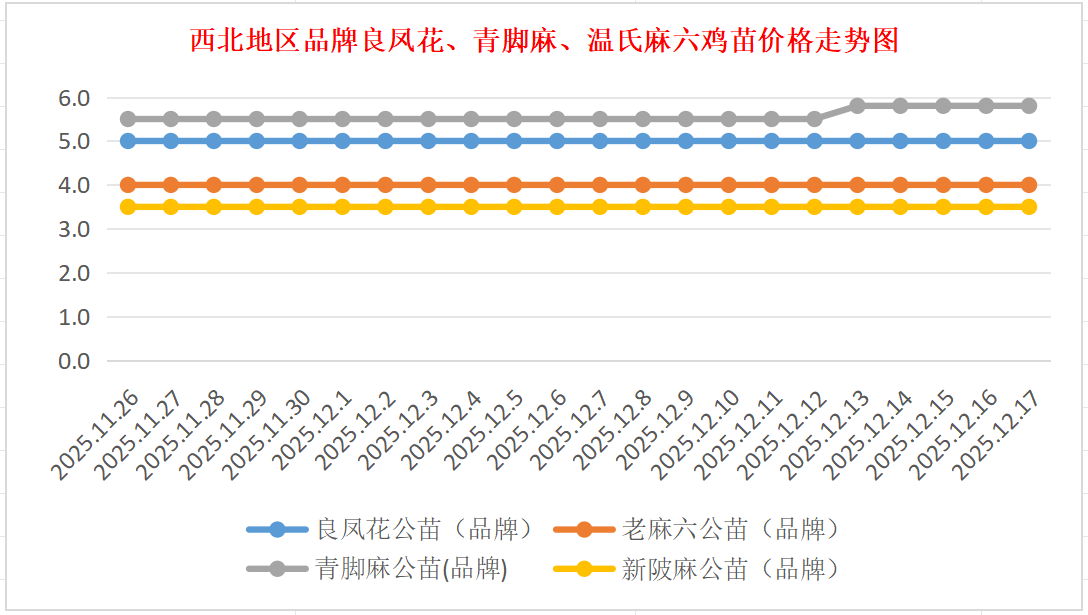 品牌新陂麻:价格稳定,到户价公苗4.50元/羽,稳。