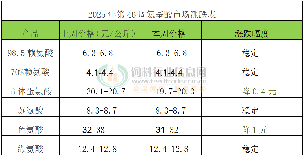 蛋氨酸市场中,参考报价区间19.7-20.3元/公斤。2025年9月国内蛋氨酸进口量为1.39万吨,同比降26.2%。赢创宣称计划第三、四季度分别对其新加坡工厂和安特卫普工厂进行为期6-7周的技术升级。液蛋新产能释放,市场供过于求,下游观望心态依存,报价弱势整理。