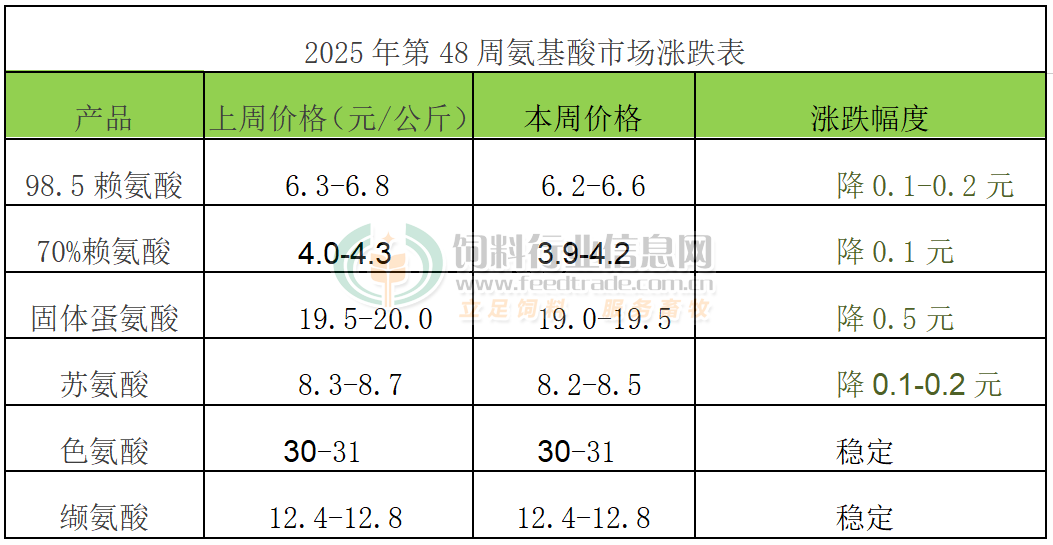色氨酸市场动态,依据不同品牌不同货量,市场报价30-31元/公斤,2025年1-10月国内进口色氨酸23905吨,同比增加23.5%。11月17日象屿生化色氨酸报价降至33元/公斤,畜禽养殖处于亏损区,下游即采即用为主,市场稳中偏弱整理。