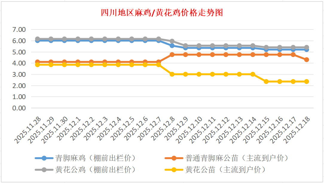 青脚麻公苗:价格下滑,主流到户价4.10-4.50元/羽,落。