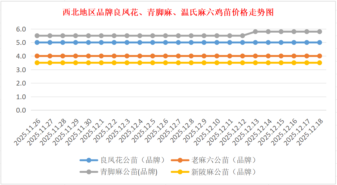品牌新陂麻:价格稳定,到户价公苗4.50元/羽,稳。