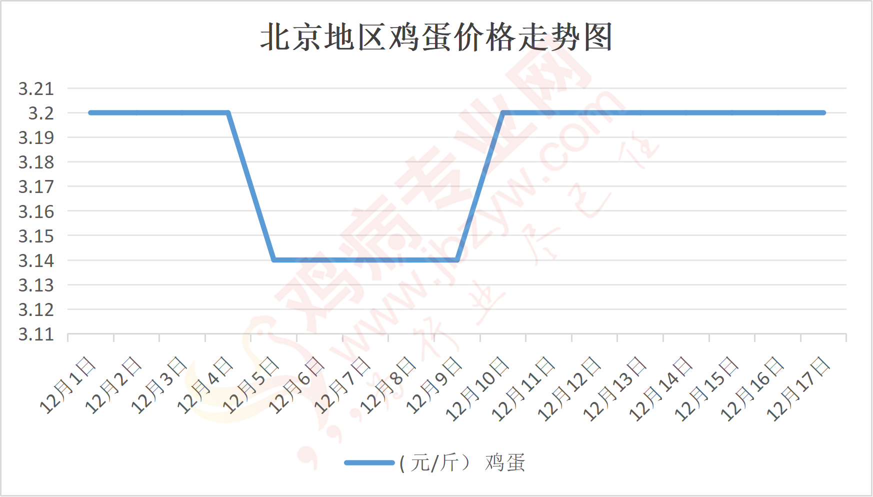 鸡病专业网消息:12月17日,北京大洋路鸡蛋主流批发价格141-142元/44斤,稳,到货5台车,成交灵活,走货正常;回龙观鸡蛋141元/44斤,稳;顺义石门鸡蛋141元/44斤,稳。