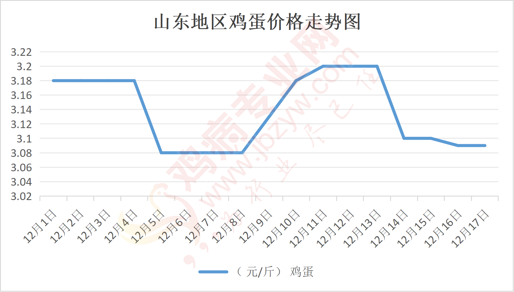 鸡病专业网消息:12月17日,山东地区莱阳鸡蛋3.15元/斤,稳;青岛鸡蛋3.15元/斤,稳;诸城鸡蛋3.15元/斤,稳;安丘鸡蛋3.05元/斤,稳;昌乐鸡蛋3.05元/斤,稳;寿光鸡蛋3.05元/斤,稳;昌邑鸡蛋3.05元/斤,稳;高密鸡蛋3.15元/斤,稳;青州鸡蛋3.05元/斤,稳;临朐鸡蛋3.05元/斤,稳;莱州鸡蛋3.15元/斤,稳;威海鸡蛋3.15元/斤,稳;临沭鸡蛋3.1元/斤,稳;沂水鸡蛋3.1元/斤,稳;沂南鸡蛋3.1元/斤,稳;莒南鸡蛋3.1元/斤,稳;兰陵县鸡蛋3.1元/斤,稳;日照鸡蛋3.1元/斤,稳;莒县鸡蛋3.1元/斤,稳;日照辛萁商贸鸡蛋3.1元/斤,稳;泗水鸡蛋价格90元/斤,稳;济宁、汶上鸡蛋价格90元/斤,稳;梁山、东平红蛋价格90元/斤,稳;枣庄滕州地区鸡蛋混码主流到户90元/30斤,落;泰安地区新泰鸡蛋价格90元/斤,稳;菏泽地区曹县主流到户90元/斤,稳;成武鸡蛋价格90元/斤,稳;单县到户90元/斤,稳;聊城莘县90元/斤,稳。