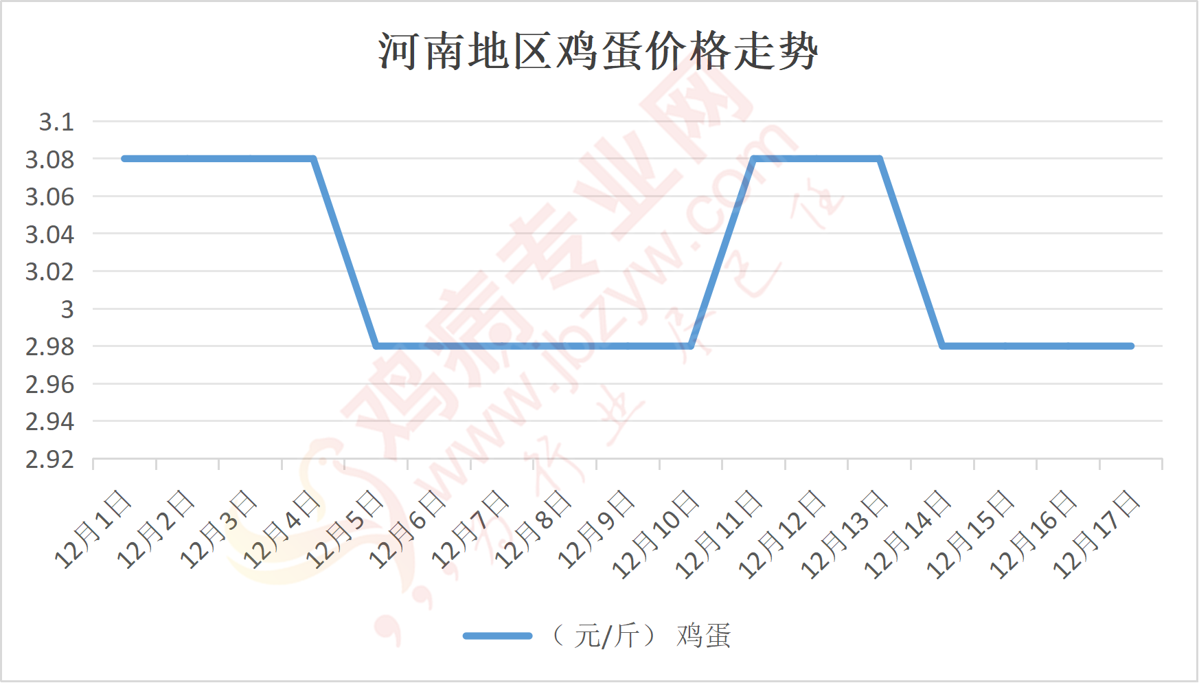 鸡病专业网消息:12月17日,河南郑州鸡蛋3元/斤,稳;新密鸡蛋3元/斤,稳;荥阳鸡蛋3元/斤,稳;中牟鸡蛋3元/斤,稳;周口鸡蛋2.95元/斤,稳;商丘鸡蛋90元/30斤,稳;鹤壁鸡蛋2.95元/斤,稳;汝州鸡蛋2.95元/斤,稳;开封鸡蛋90元/30斤,稳;漯河鸡蛋2.95元/斤,稳;漯河临颍鸡蛋2.95元/斤,稳;许昌鸡蛋3元/斤,稳;南阳鸡蛋2.95元/斤,稳;南阳邓州鸡蛋2.95元/斤,稳;新乡鸡蛋2.95元/斤,稳;安阳鸡蛋2.95元/斤,稳;新郑鸡蛋3元/斤,稳;登封鸡蛋3元/斤,稳;平顶山鸡蛋3元/斤,稳;驻马店鸡蛋3元/斤,稳;三门峡鸡蛋3元/斤,稳;焦作鸡蛋2.95元/斤,稳;信阳鸡蛋2.95元/斤,稳;濮阳鸡蛋2.95元/斤,稳。