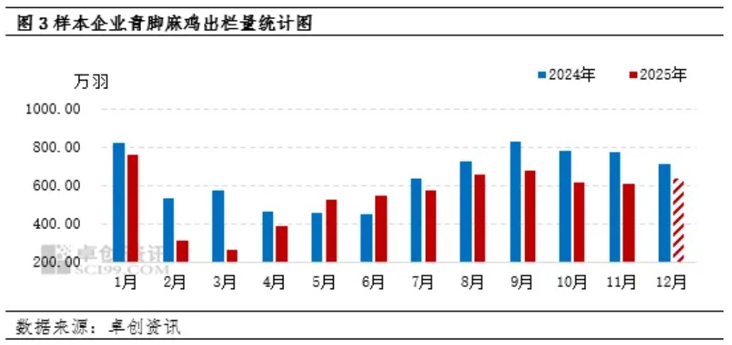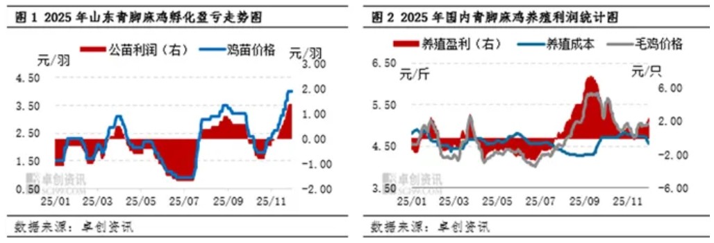 综上所述,11月青脚麻鸡养殖收入缩水,虽成本微降,难掩养殖盈利收缩,同期苗市收入扩大,拉动孵化端扭亏为盈;进入12月,孵化端需求进一步升温,苗价有望冲至年内峰值,孵化利润丰厚,而毛鸡处消费淡季,收入预期继续走低,养殖盈利将进一步收窄。由此可见,11月出现孵化利润提升而养殖盈利收缩的分化态势,该态势预计在12月继续扩大,预计12月鸡苗孵化盈利提升至1.50元/羽,而毛鸡养殖盈利或小幅压缩至0.95元/只。