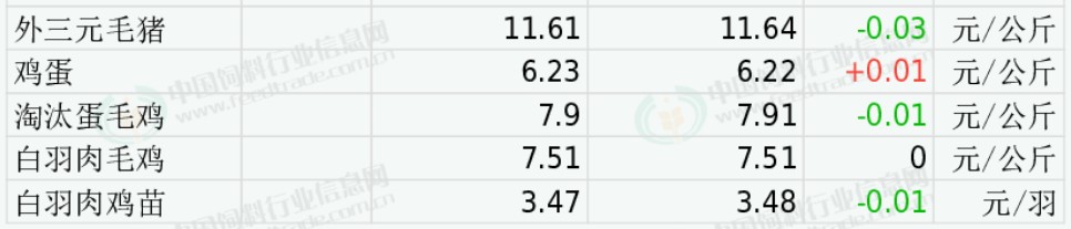 全国均价为 11.61元/公斤,较昨日价格下跌0.25%。近期规模猪企缩量出栏操作明显,同时养殖端扛价惜售情绪升温,前期猪价接近低位,养殖端抵触情绪增强,出栏节奏放缓,散户多处于观望状态,出栏积极性一般。随着气温下降,南方腌腊需求零星开启,终端消费出现小幅回暖,带动下游屠宰企业订单增加。但目前腌腊需求尚未规模化启动,且禽肉、鸡蛋等替代品价格偏低,居民替代消费较多,猪肉消费增量依然有限,预计猪价将延续震荡调整。