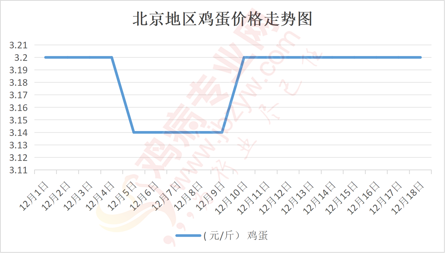 鸡病专业网消息:12月18日,北京大洋路鸡蛋主流批发价格141-142元/44斤,稳,到货5台车,成交灵活,走货正常;回龙观鸡蛋141元/44斤,稳;顺义石门鸡蛋141元/44斤,稳。