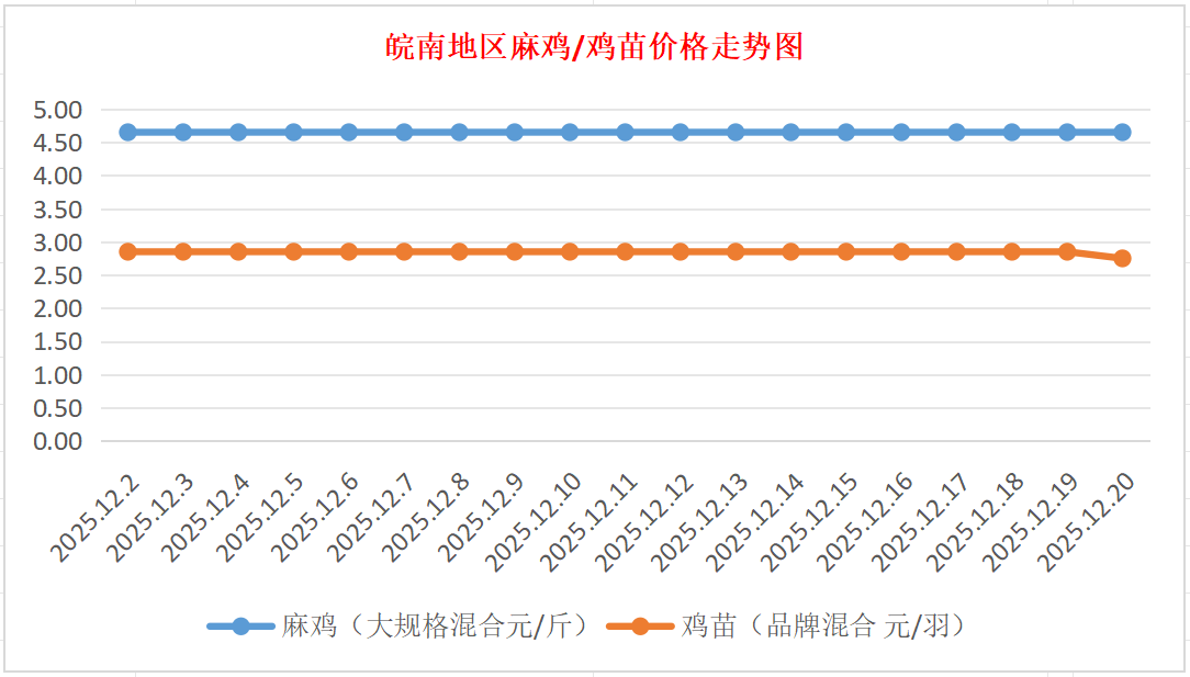 鸡病专业网独家信息:2025年12月20日皖南地区817-麻鸡行情最新走势