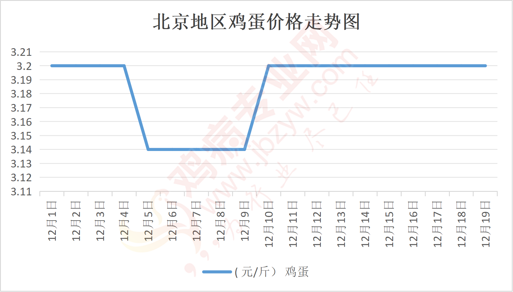 鸡病专业网消息:12月19日,北京大洋路鸡蛋主流批发价格141-142元/44斤,稳,到货4台车,成交灵活,走货正常;回龙观鸡蛋141元/44斤,稳;顺义石门鸡蛋141元/44斤,稳。