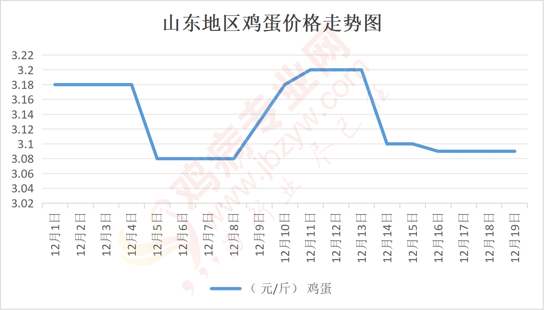 鸡病专业网消息:12月19日,山东地区莱阳鸡蛋3.15元/斤,稳;青岛鸡蛋3.15元/斤,稳;诸城鸡蛋3.15元/斤,稳;安丘鸡蛋3.05元/斤,稳;昌乐鸡蛋3.05元/斤,稳;寿光鸡蛋3.05元/斤,稳;昌邑鸡蛋3.05元/斤,稳;高密鸡蛋3.15元/斤,稳;青州鸡蛋3.05元/斤,稳;临朐鸡蛋3.05元/斤,稳;莱州鸡蛋3.15元/斤,稳;威海鸡蛋3.15元/斤,稳;临沭鸡蛋3.1元/斤,稳;沂水鸡蛋3.1元/斤,稳;沂南鸡蛋3.1元/斤,稳;莒南鸡蛋3.1元/斤,稳;兰陵县鸡蛋3.1元/斤,稳;日照鸡蛋3.1元/斤,稳;莒县鸡蛋3.1元/斤,稳;日照辛萁商贸鸡蛋3.1元/斤,稳;泗水鸡蛋价格90元/斤,稳;济宁、汶上鸡蛋价格90元/斤,稳;梁山、东平红蛋价格90元/斤,稳;枣庄滕州地区鸡蛋混码主流到户90元/30斤,落;泰安地区新泰鸡蛋价格90元/斤,稳;菏泽地区曹县主流到户90元/斤,稳;成武鸡蛋价格90元/斤,稳;单县到户90元/斤,稳;聊城莘县90元/斤,稳。