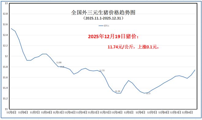 从最新数据显示,受冬至临近,节前屠宰场备货支撑转强,样本屠宰场开工率回升至39.9%左右,需求拉升下,养殖端集团猪企出现一定拉涨操作,市场情绪转强!预估,12月19日外三元生猪价格出栏均价回升至11.74元/公斤,受冬至节气腌腊高峰到来,猪价重心有望破位上涨,标猪报价存在涨破12元/公斤的机会!
