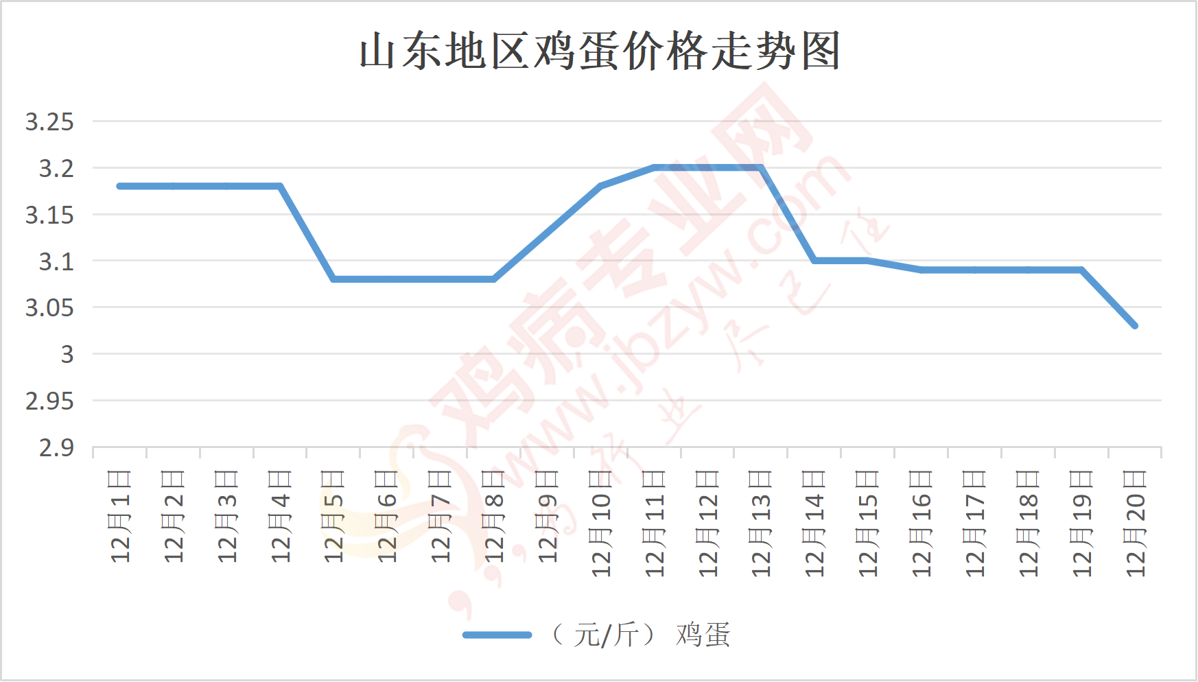 鸡病专业网消息:12月20日,山东地区莱阳鸡蛋3.1元/斤,落;青岛鸡蛋3.1元/斤,落;诸城鸡蛋3.1元/斤,落;安丘鸡蛋2.95元/斤,落;昌乐鸡蛋2.95元/斤,落;寿光鸡蛋2.95元/斤,落;昌邑鸡蛋2.95元/斤,落;高密鸡蛋3.1元/斤,落;青州鸡蛋2.95元/斤,落;临朐鸡蛋2.95元/斤,落;莱州鸡蛋3.1元/斤,落;威海鸡蛋3.1元/斤,落;临沭鸡蛋3元/斤,落;沂水鸡蛋3元/斤,落;沂南鸡蛋3元/斤,落;莒南鸡蛋3元/斤,落;兰陵县鸡蛋3元/斤,落;日照鸡蛋3元/斤,落;莒县鸡蛋3元/斤,落;日照辛萁商贸鸡蛋3元/斤,落;泗水鸡蛋价格87元/斤,落;济宁、汶上鸡蛋价格87元/斤,落;梁山、东平红蛋价格87元/斤,落;枣庄滕州地区鸡蛋混码主流到户87元/30斤,落;泰安地区新泰鸡蛋价格87元/斤,落;菏泽地区曹县主流到户87元/斤,落;成武鸡蛋价格87元/斤,落;单县到户87元/斤,落;聊城莘县87元/斤,落。