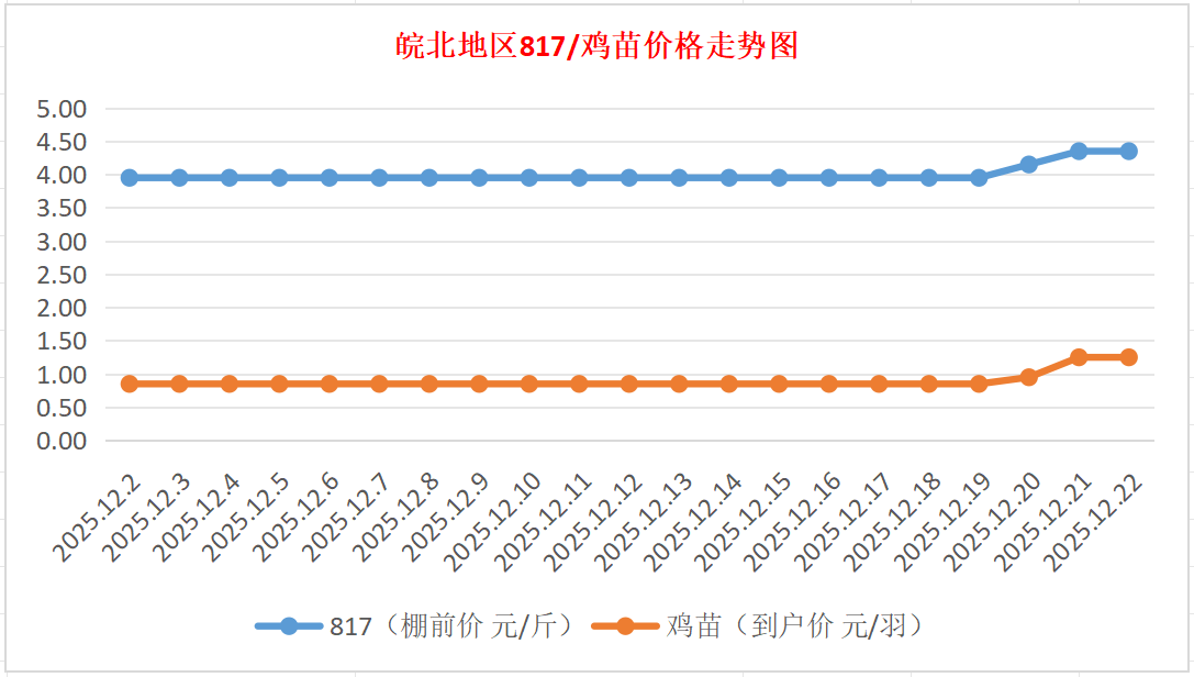 鸡病专业网独家信息:2025年12月22日皖北地区817-麻鸡行情最新走势