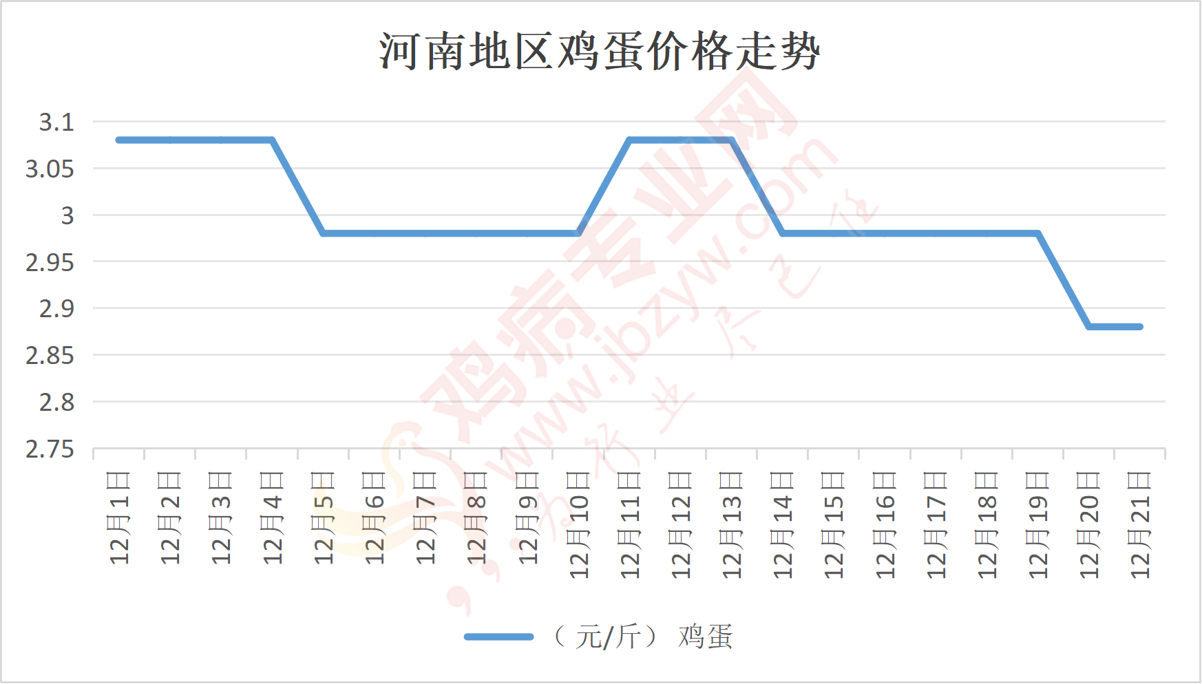 鸡病专业网消息:12月21日,河南郑州鸡蛋2.9元/斤,稳;新密鸡蛋2.9元/斤,稳;荥阳鸡蛋2.9元/斤,稳;中牟鸡蛋2.9元/斤,稳;周口鸡蛋2.85元/斤,稳;商丘鸡蛋87元/30斤,稳;鹤壁鸡蛋2.85元/斤,稳;汝州鸡蛋2.85元/斤,稳;开封鸡蛋87元/30斤,稳;漯河鸡蛋2.85元/斤,稳;漯河临颍鸡蛋2.85元/斤,稳;许昌鸡蛋2.9元/斤,稳;南阳鸡蛋2.85元/斤,稳;南阳邓州鸡蛋2.85元/斤,稳;新乡鸡蛋2.85元/斤,稳;安阳鸡蛋2.85元/斤,稳;新郑鸡蛋2.9元/斤,稳;登封鸡蛋2.9元/斤,稳;平顶山鸡蛋2.9元/斤,稳;驻马店鸡蛋2.9元/斤,稳;三门峡鸡蛋2.9元/斤,稳;焦作鸡蛋2.85元/斤,稳;信阳鸡蛋2.85元/斤,稳;濮阳鸡蛋2.85元/斤,稳。