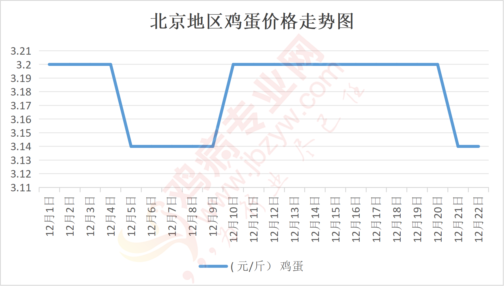 鸡病专业网消息:12月22日,北京大洋路鸡蛋主流批发价格138-139元/44斤,稳,到货2台车,成交灵活,走货正常;回龙观鸡蛋138元/44斤,稳;顺义石门鸡蛋138元/44斤,稳。