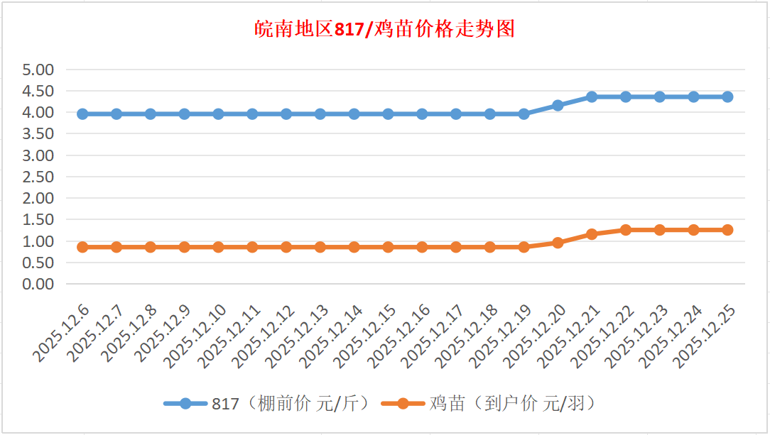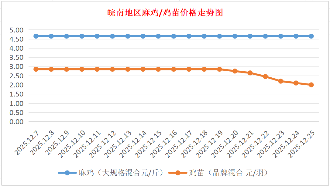 鸡病专业网独家信息:2025年12月25日皖南地区817-麻鸡行情最新走势