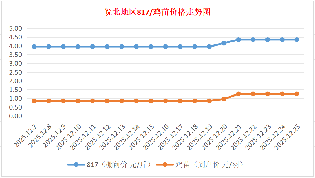 鸡病专业网独家信息:2025年12月25日皖北地区817-麻鸡行情最新走势