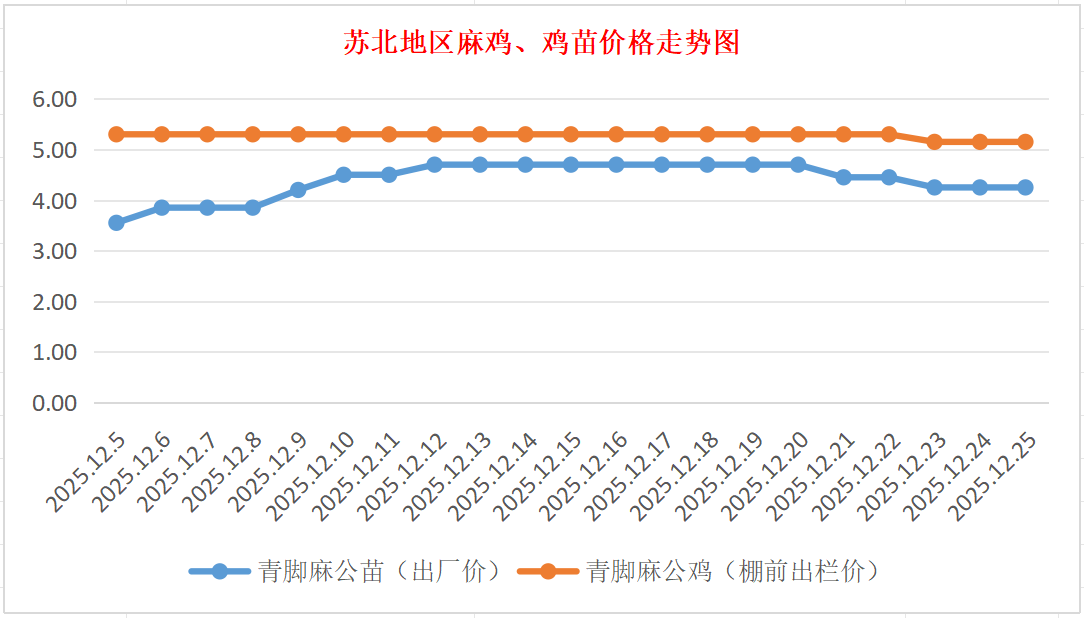 苏北地区麻鸡、鸡苗价格走势图(图源:鸡病专业网)