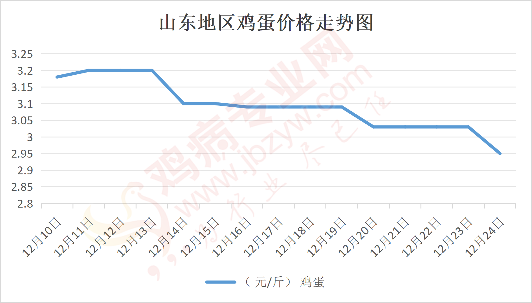 鸡病专业网消息:12月24日,山东地区莱阳鸡蛋3元/斤,落;青岛鸡蛋3元/斤,落;诸城鸡蛋3元/斤,落;安丘鸡蛋2.9元/斤,落;昌乐鸡蛋2.9元/斤,落;寿光鸡蛋2.9元/斤,落;昌邑鸡蛋2.9元/斤,落;高密鸡蛋3元/斤,落;青州鸡蛋2.9元/斤,落;临朐鸡蛋2.9元/斤,落;莱州鸡蛋3元/斤,落;威海鸡蛋3元/斤,落;临沭鸡蛋2.9元/斤,落;沂水鸡蛋2.9元/斤,落;沂南鸡蛋2.9元/斤,落;莒南鸡蛋2.9元/斤,落;兰陵县鸡蛋2.9元/斤,落;日照鸡蛋2.9元/斤,落;莒县鸡蛋2.9元/斤,落;日照辛萁商贸鸡蛋2.9元/斤,落;泗水鸡蛋价格84元/斤,落;济宁、汶上鸡蛋价格84元/斤,落;梁山、东平红蛋价格84元/斤,落;枣庄滕州地区鸡蛋混码主流到户84元/30斤,落;泰安地区新泰鸡蛋价格84元/斤,落;菏泽地区曹县主流到户84元/斤,落;成武鸡蛋价格84元/斤,落;单县到户84元/斤,落;聊城莘县84元/斤,落。