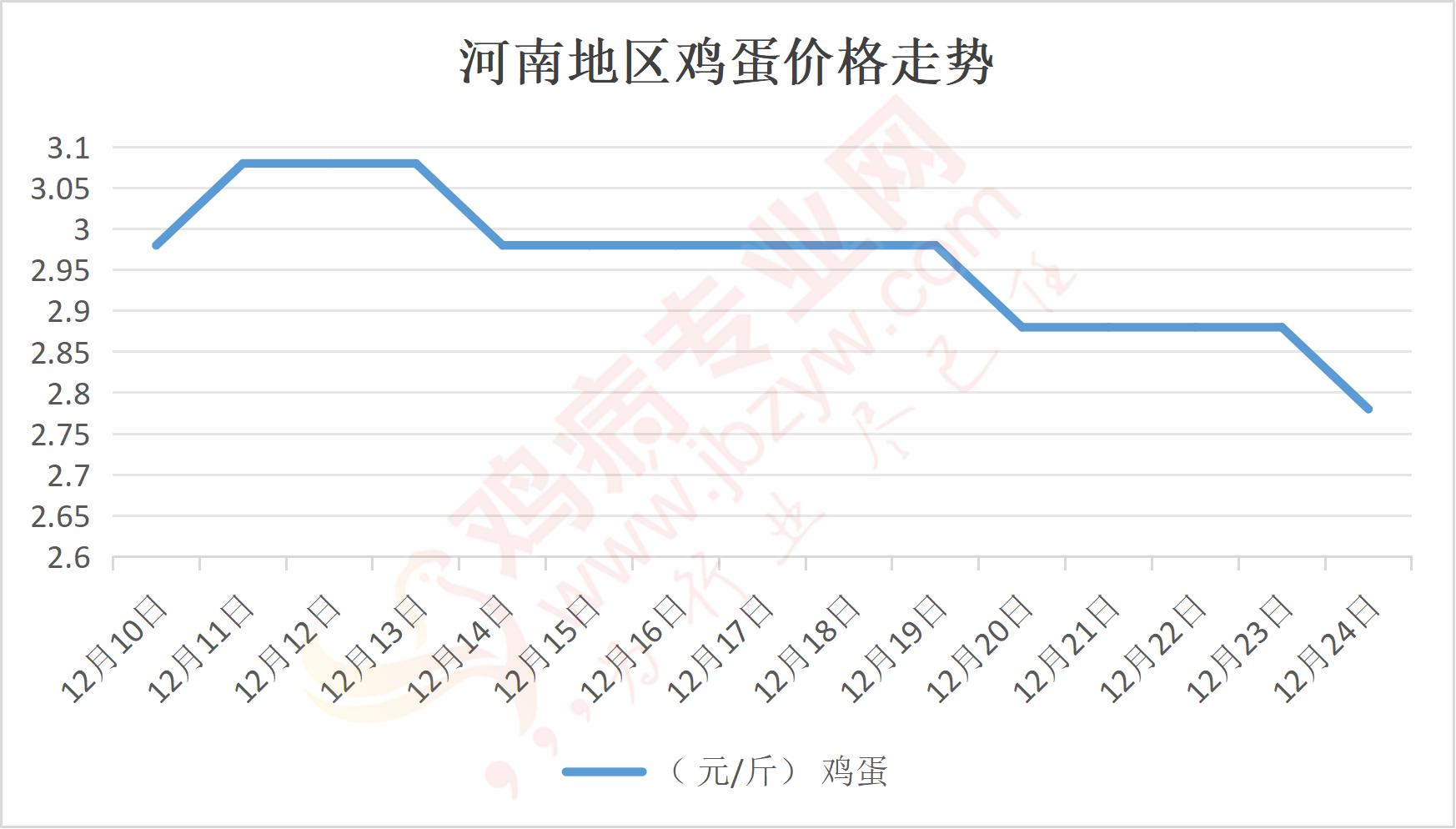 鸡病专业网消息:12月24日,河南郑州鸡蛋2.8元/斤,落;新密鸡蛋2.8元/斤,落;荥阳鸡蛋2.8元/斤,落;中牟鸡蛋2.8元/斤,落;周口鸡蛋2.75元/斤,落;商丘鸡蛋84元/30斤,落;鹤壁鸡蛋2.75元/斤,落;汝州鸡蛋2.75元/斤,落;开封鸡蛋84元/30斤,落;漯河鸡蛋2.75元/斤,落;漯河临颍鸡蛋2.75元/斤,落;许昌鸡蛋2.8元/斤,落;南阳鸡蛋2.75元/斤,落;南阳邓州鸡蛋2.75元/斤,落;新乡鸡蛋2.75元/斤,落;安阳鸡蛋2.75元/斤,落;新郑鸡蛋2.8元/斤,落;登封鸡蛋2.8元/斤,落;平顶山鸡蛋2.8元/斤,落;驻马店鸡蛋2.8元/斤,落;三门峡鸡蛋2.8元/斤,落;焦作鸡蛋2.75元/斤,落;信阳鸡蛋2.75元/斤,落;濮阳鸡蛋2.75元/斤,落。