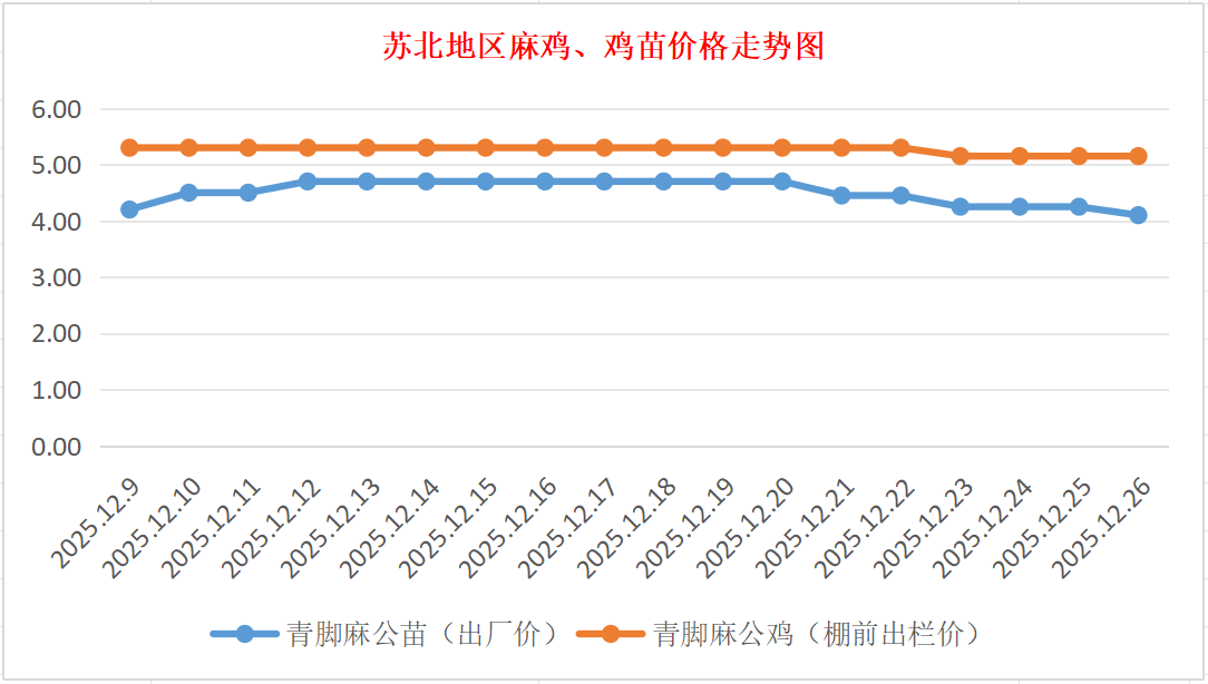 苏北地区麻鸡、鸡苗价格走势图(图源:鸡病专业网)