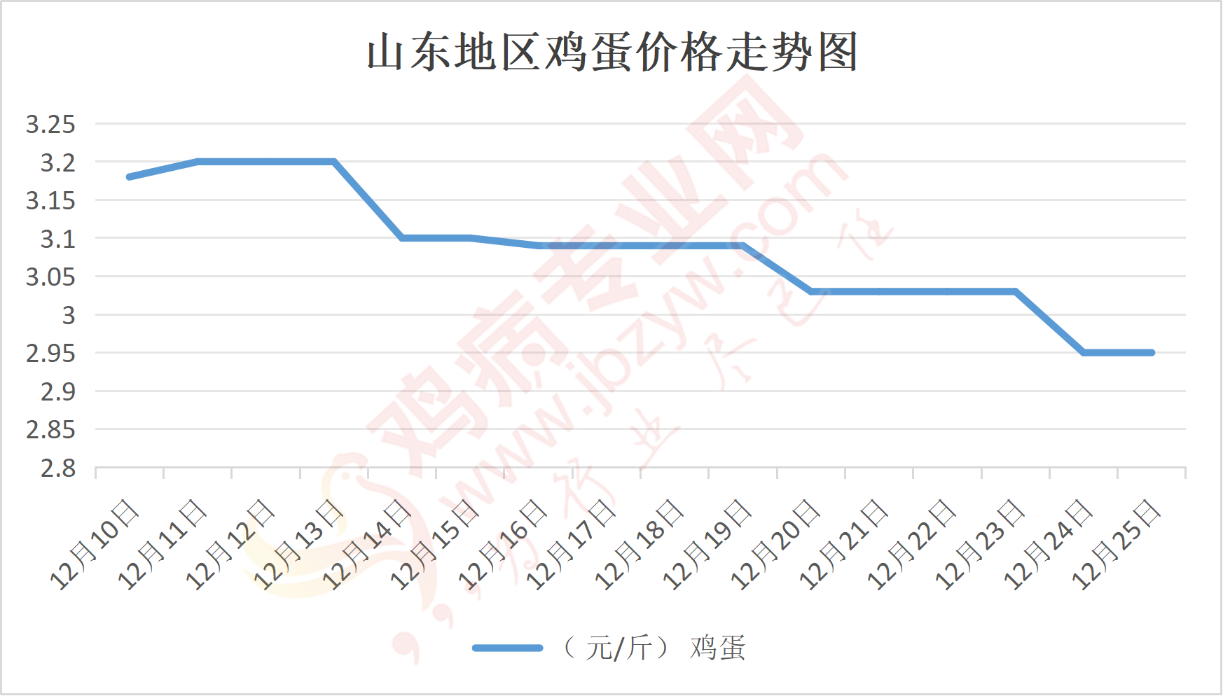 鸡病专业网消息:12月25日,山东地区莱阳鸡蛋3元/斤,稳;青岛鸡蛋3元/斤,稳;诸城鸡蛋3元/斤,稳;安丘鸡蛋2.9元/斤,稳;昌乐鸡蛋2.9元/斤,稳;寿光鸡蛋2.9元/斤,稳;昌邑鸡蛋2.9元/斤,稳;高密鸡蛋3元/斤,稳;青州鸡蛋2.9元/斤,稳;临朐鸡蛋2.9元/斤,稳;莱州鸡蛋3元/斤,稳;威海鸡蛋3元/斤,稳;临沭鸡蛋2.9元/斤,稳;沂水鸡蛋2.9元/斤,稳;沂南鸡蛋2.9元/斤,稳;莒南鸡蛋2.9元/斤,稳;兰陵县鸡蛋2.9元/斤,稳;日照鸡蛋2.9元/斤,稳;莒县鸡蛋2.9元/斤,稳;日照辛萁商贸鸡蛋2.9元/斤,稳;泗水鸡蛋价格84元/斤,稳;济宁、汶上鸡蛋价格84元/斤,稳;梁山、东平红蛋价格84元/斤,稳;枣庄滕州地区鸡蛋混码主流到户84元/30斤,稳;泰安地区新泰鸡蛋价格84元/斤,稳;菏泽地区曹县主流到户84元/斤,稳;成武鸡蛋价格84元/斤,稳;单县到户84元/斤,稳;聊城莘县84元/斤,稳。