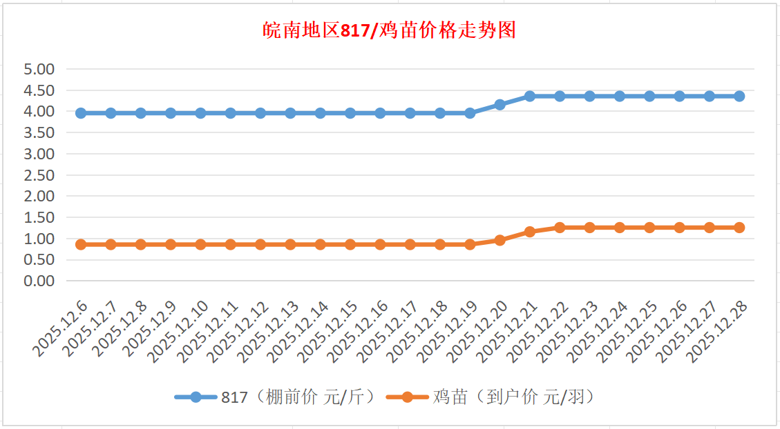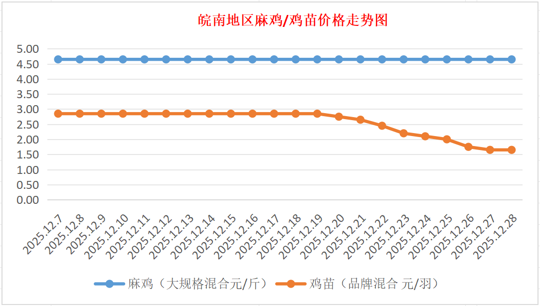 鸡病专业网独家信息:2025年12月28日皖南地区817-麻鸡行情最新走势